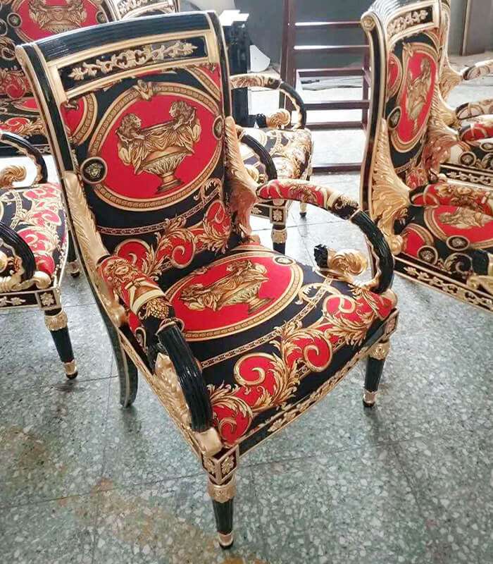 This Versace vatitas armchair is very luxury.Artech made this high end dining chair for one Villa in Shanghai.Versace is a very luxury brands producing wide range of luxury products including Jewelry,perfume,furniture and so on.In China, more and mor