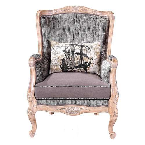 It is one fabric sofa with solid wood frame,which has antique finishing